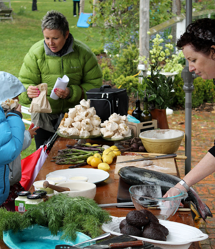 We are back from the fete is was a typical spring day...a little rain fell and then a little more fell and unfortunately more fell. It was such a shame as it was so well organised and so beautifully laid out, live entertainment and so many unbelivably beautiful stalls. I was to do my demonstration outside by the wood oven, very exposed to the elements. I had made mountains of meringues, had all my beautiful props (thanks to total food equipment) and lots of fabulous food to prepare, cook and eat.